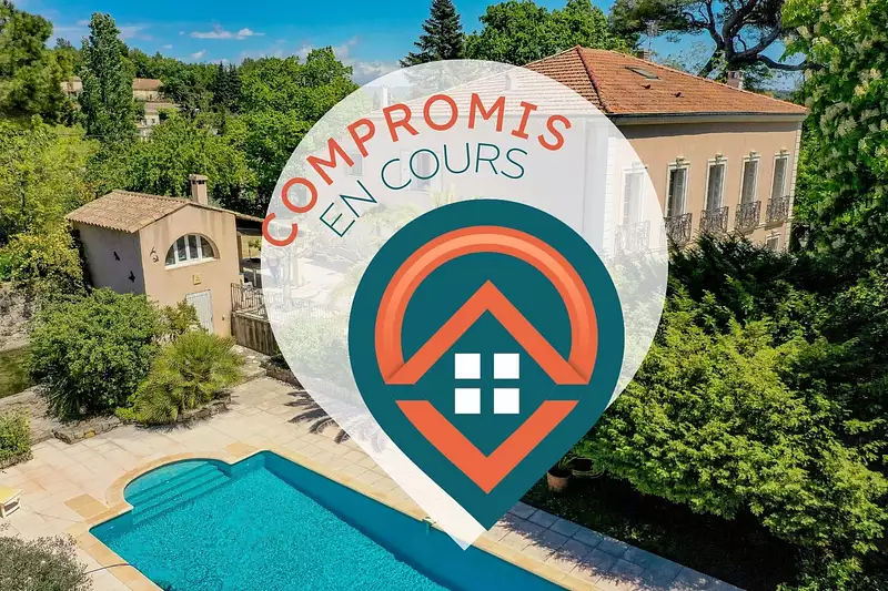 SOUS COMPROMIS par votre agence SOGIP ! Flayosc proche du village dans un superbe parc clos et remarquablement paysagé de 4660 m2, une superbe MAISON DE MAITRE de plus de 240 m2 habitables, avec une 2ième maison de caractère indépendante de 65 m2 habitables, et Dépendances. 1/ La maison de Maître dispose de plusieurs pièces de vie, salon, une verrière, cuisine équipée. Au 1er étage : une chambre de maître de 28m2 avec sa salle de bain, 4 autres chambres (18 à 20 m2), salle de bain et salle d'eau. Au 2ième étage : bureau de 14 m2 et combles aménageables. Belle Cave voûtée au sous-sol, garage attenant avec chaufferie de 24 m2. 2/ La villa indépendante de 65 m2 (consulter sa visite virtuelle) dispose De plain-pied : d'un dégagement, séjour salle à manger avec sa cuisine ouverte équipée, salle d'eau avec wc, A l'étage : 2 chambres et cabinet de toilette avec WC. Garage de 39 m2, cave et Buanderie indépendante. 3/ Le Parc est superbe, de nombres essences différentes, un bassin de 12 m de longueur alimenté par une source, le canal d'arrosage, Une Piscine chauffée de 10x5 et ses plages autour, Pool house avec salle d'eau, et autres dépendances... Des travaux seront à prévoir. Beaucoup de potentiel, détachement possible.. Le bien est raccordé au tout-à-l'égout. Affaire rare et unique à découvrir. SOGIP à FLAYOSC votre agence historique sur le village depuis plus de 30 ans Caroline et Bruno à votre écoute
