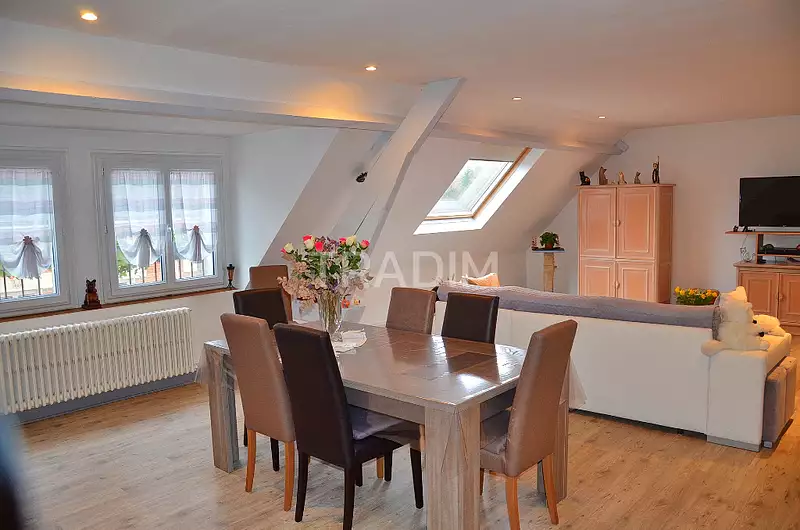 Au rdc 3 bureaux, sanitaires et un appartement attenant en duplex: cuisine ouverte sur séjour de 80m², 2 chambres, 1 salle d'eau, 1 salle de bains, 2 wc, un grenier à aménager de 45 m².