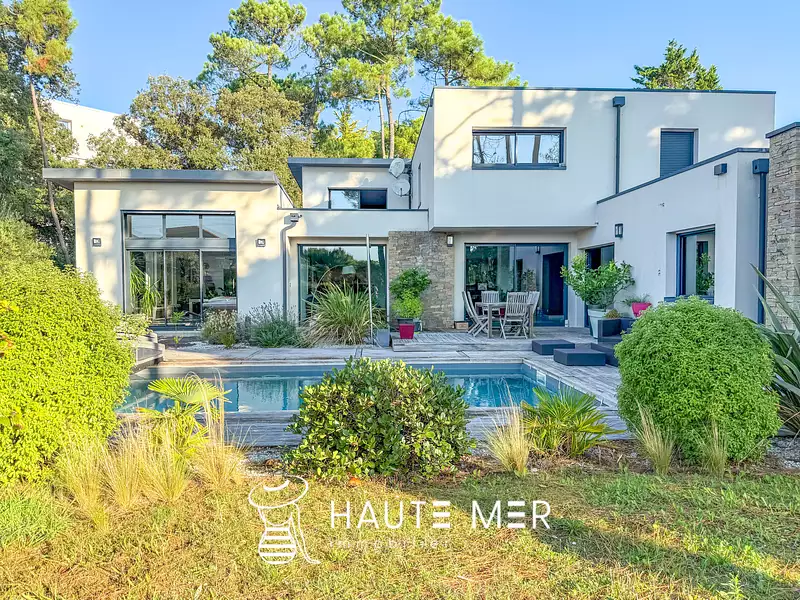 À quelques encablures de l’océan, dans le quartier recherché du domaine de la Pironnière, se dévoile une villa élégante de près de 300 m2, entourée d’un jardin paysager de 1 800 m2. La lumière y circule librement : l'espace de vie est rythmé par trois agréables pièces se prolongeant chacune sur le jardin paysagé. La cuisine et son espace repas, lieu de partage et de convivialité, profitent également de l'espace extérieur. La suite parentale, avec dressing et salle de bains, compose un refuge intime. Une chambre indépendante, dotée de sa salle d’eau, accueille vos hôtes en toute sérénité. À l’étage, deux chambres, un bureau lumineux et une salle de cinéma complètent l’ensemble. À l’extérieur, le jardin aux essences méditerranéennes guide vos pas vers une piscine chauffée, promesse de moments suspendus entre ciel et mer. Un triple garage ainsi qu'une spacieuse cave à vin complètent cette villa contemporaine. Un cadre de vie rare, où l’espace et la douceur de l’Atlantique se rencontrent. Retrouvez nos annonces sur