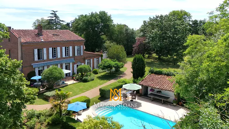 Nichée sur un terrain paysager de 7 000 m2 avec de grands arbres matures, cette élégante maison de maître en brique rouge offre un savant mélange de charme d'époque, de confort moderne et de beaux volumes habitables, à seulement 30 minutes de Toulouse et 4 minutes de Nailloux.