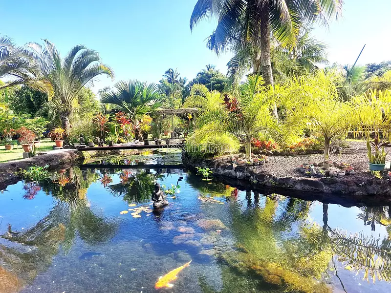 Terrain arboré par de nombreux arbres fruitiers et tropicaux
