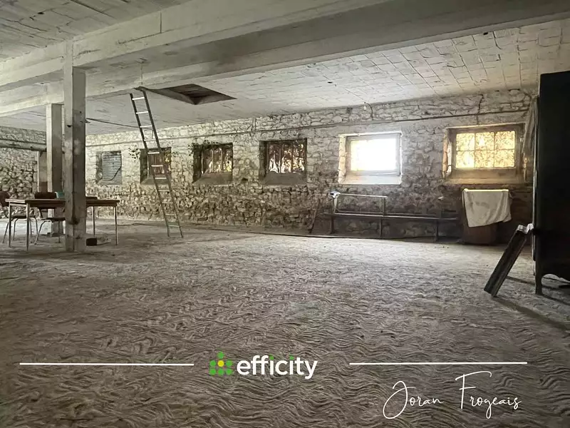 Elle offre 320 m² à rénover entièrement en second œuvre : isolation, sols, électricité… Aucun gros œuvre à prévoir, ce qui laisse la place à une personnalisation totale.