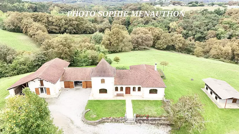 Exclusivité- A seulement 11 km de Pontonx-sur-l'Adour, Tartas et 25 km de Dax, MAISON DE CARACTERE de type 8 pièces de 300 m2 construite en 2007, nichée au coeur d'un domaine de plus de 13 hectares bordé de prairies, ruisseau et forêt. Au calme absolu et sans vis-à-vis, cette propriété offre un cadre préservé. La maison se compose d'un spacieux hall d'entrée, une vaste pièce de vie de 80 m2 baignée de lumière avec de belles hauteurs sous plafond, ouvrant sur une terrasse et équipée d'un insert, cuisine aménagée et équipée, 3 chambres dont une grande suite parentale en rez-de-chaussée, 2 salles d'eau, salle de bains et 5 wc. La propriété dispose d'un appartement T2/bis indépendant sur une aile de la maison, 3 boxes à chevaux, sellerie, carrière à chevaux, garage pour 3 voitures (50 m2) + sous-sol de 60 m2. Très belles prestations, construction de qualité irréprochable. Diagnostics en cours. Contactez Séverine ETCHEGARAY Tél : 06 75 49 61 04 ou Sophie MENAUTHON Tél : 06 25 42 67 68 EQUINOXES IMMOBILIER Agence specialisée en biens de Prestige Landes et Pays Basque Plus d'informations (réf. 4000925586) Prix TTC et Honoraires à charge vendeur TTC AGENT COMMERCIAL Les informations sur les risques auxquels ce bien est exposé sont disponibles sur le site Géorisques : georisques.gouv.fr