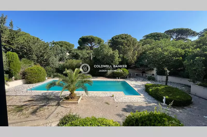 Secteur Croisette - Proche des plages et du centre ville, cette charmante villa située dans un domaine sécurisé propose en rdc un hall d'entrée avec toilette invité, une chambre ou bureau, une grande pièce à vivre avec coin salon (avec cheminée) et coin salle à manger, une cuisine séparée. A l'étage 2 belles chambres en suite ouvrant chacune sur un balcon. Appartement indépendant de plain-pied, 2 chambres, une salle de bains avec WC. Grand sous-sol avec garage 3/4 voitures. Jardin paysager avec grande piscine de 15 m chauffée. Beau potentiel !