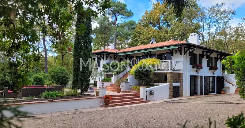 Cette élégante maison de style basque, nichée au cœur d'une forêt protégée classée Forêt Royale, combine harmonieusement luxe, confort et sérénité. Avec plus de 300 m2 de surface, elle garantit une intimité totale à seulement 25 minutes de Toulouse et de son aéroport, idéale comme résidence principale ou secondaire.