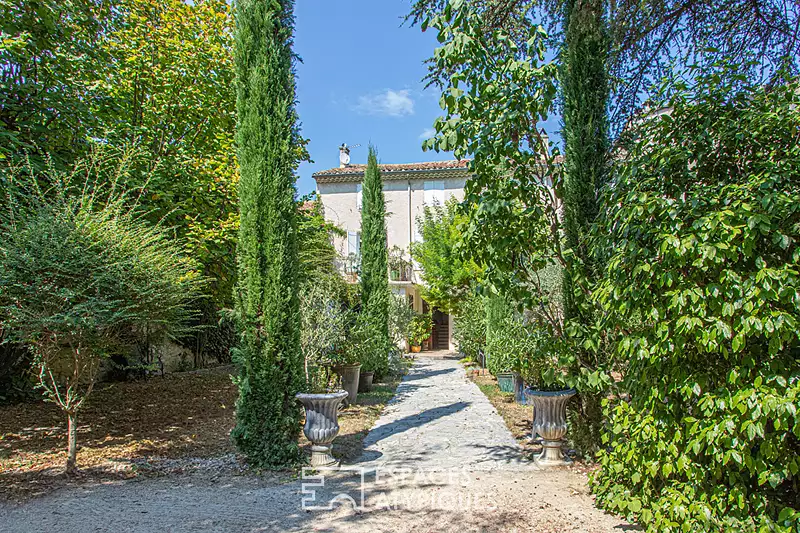 Au coeur de Vaison-la-Romaine, cette maison bourgeoise du centre-ville développe environ 300 m² de surface habitable, édifiée sur un terrain arboré de 710 m². Véritable demeure de caractère, elle séduit par ses volumes généreux, son cachet préservé et son emplacement privilégié face aux vestiges antiques et à la haute ville. L'intérieur se déploie sur trois niveaux et distribue de superbes espaces de vie baignés de lumière. Le rez-de-chaussée accueille un salon chaleureux, une cuisine provençale ouverte sur la terrasse ainsi qu'une salle à manger conviviale. Une chambre avec salle d'eau, une buanderie et des dépendances complètent ce niveau. A l'étage, la partie nuit propose une suite parentale, un vaste bureau, deux chambres en enfilade, un grand dressing et plusieurs salles de bains. Le dernier niveau, aux volumes impressionnants, se compose d'une grande pièce traversante et de deux chambres supplémentaires, offrant de multiples possibilités d'aménagement. Les éléments anciens; escalier en pierre, carreaux de terre cuite, plafonds hauts, confèrent à cette maison une authenticité rare. A l'extérieur, le jardin paysager forme un véritable écrin de verdure en plein centre-ville. Allées ombragées, végétation méditerranéenne et terrasses créent une atmosphère unique et préservée. Deux carports, un atelier et plusieurs espaces de stationnement apportent confort et praticité au quotidien. La proximité immédiate des commerces, écoles et services permet de profiter pleinement du dynamisme de Vaison-la-Romaine, tout en bénéficiant d'un cadre intime et verdoyant. Ce bien singulier, mêlant cachet ancien et potentiel d'aménagement, s'adresse aux amateurs de demeures atypiques en quête d'un lieu de vie hors du commun. CLASSE ENERGIE : D / CLASSE CLIMAT : B Montant estimé des dépenses annuelles d'énergie pour un usage standard : entre 4090 EUR et 5560 EUR par an établi à partir des prix de l'énergie de l'année 2021, 2022, 2025. Les informations sur les risques auxquels ce bien est exposé sont disponibles sur le site Géorisques : www.georisques.gouv.fr.