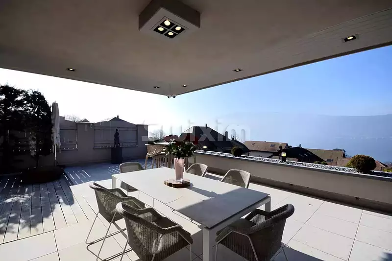 Réf : 69381AF, Nichée sur les hauteurs de Veyrier-du-Lac, cette somptueuse villa d’environ 300 m², orientée plein sud, vous offre une vue panoramique à couper le souffle sur la ville d'Annecy et son Lac.