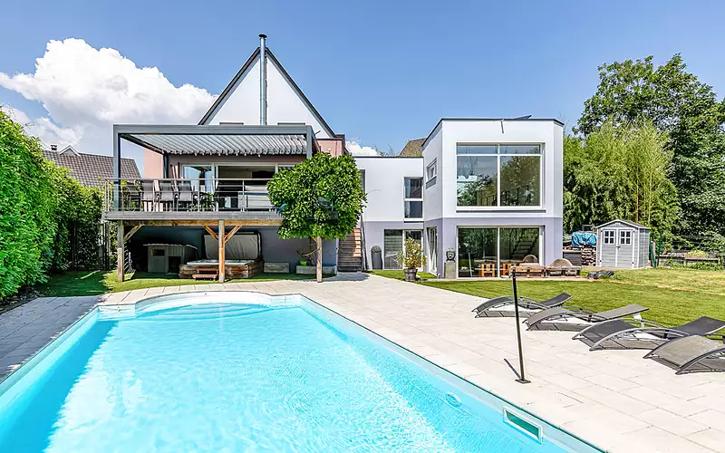 Un volume lumineux au bord de l'eau : Nichée dans une impasse calme de Plobsheim, cette maison d'architecte conjugue lignes pures, volumes généreux et lumière omniprésente. Une grande terrasse suspendue prolonge les pièces de vie vers l'extérieur, sur un jardin paysagé bordé d'un cours d'eau, le Krimmeri. La piscine chauffée, les équipements haut de gamme et l'extension indépendante en font un bien aussi fonctionnel qu'élégant. Une maison contemporaine avec piscine, parfaite pour une famille en quête d'espace et/ou d'une activité libérale aux portes de Strasbourg. Avis de l'agence : Cet ensemble séduit par sa cohérence, son articulation claire entre sphère privée et espace professionnel, et l'équilibre subtil entre modernité architecturale et douceur résidentielle. Une maison moderne et intemporelle pour ceux qui cherchent un cadre de vie élégant, connecté à la nature, tout en restant à proximité directe de Strasbourg et des échanges transfrontaliers. Un bien rare, entre sérénité et fonctionnalité. Dossier complet sur demande. Marion JULLY (EI) Agent Commercial - Numéro RSAC : - .