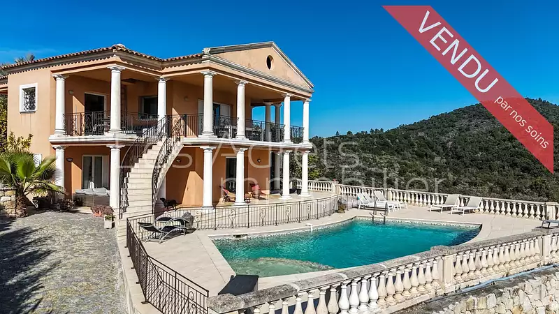 * VENDU par nos soins * Située dans un cadre naturel d'exception, au cœur du massif de l'Esterel, cette villa d’architecture Palladienne de 309 m² s’élève sur un terrain d'environ 4000 m² et bénéficie d'une vue panoramique spectaculaire à 270° sur la mer Méditerranée et les majestueuses roches rouges de l'Esterel.