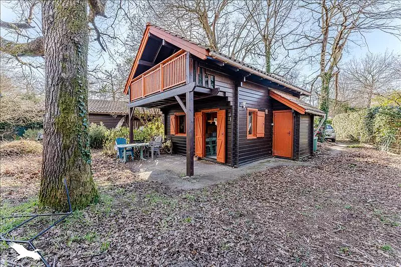 Situé dans un parc résidentiel de loisir; Joli chalet bois dans environnement boisé et calme, composé d'un salon, séjour/cuisine, une belle chambre avec terrasse exposée plein sud, sur une parcelle d'environ 275m². Calme absolu