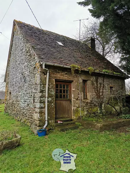 Charmante petite maison en pierres, à restaurer, couverte en tuiles, une pièce avec cheminée ouverte et grenier, jardin.