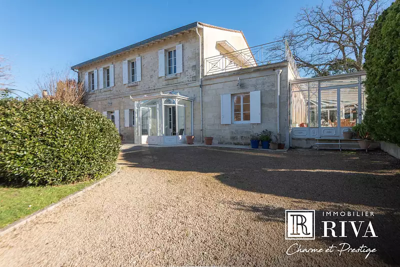 CARIGNAN DE BORDEAUX - IMMOBILIER RIVA vous propose cette belle demeure en pierre du 19ème comprenant au rez de chaussée : Entrée, cuisine équipée, salle à manger donnant sur une belle véranda (47 m2) au charme d'antan, salon séjour avec cheminée, chaufferie buanderie, bureau (chambre possible) et à l'étage : 3 chambres avec chacune leur salle d'eau wc ainsi qu' une suite parentale avec dressing, salle de bains wc et sa grande terrasse surplombant un parc arboré de 2386 m2 avec sa piscine 11 x 5m chauffée par Pac et sécurisée par volet roulant immergé. Une maison d'amis de 50 m2 ainsi qu'un atelier et garage complètent l'ensemble. Un lieu unique, plein de charme à l'abris de regards. Commerces et transports en bus à proximité.