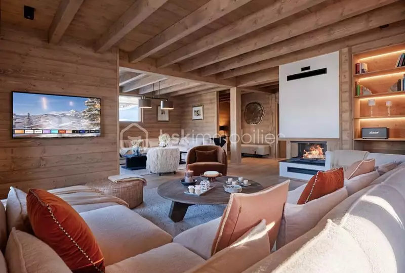Réparti sur trois niveaux, le chalet offre des volumes généreux et des aménagements pensés pour le confort :
