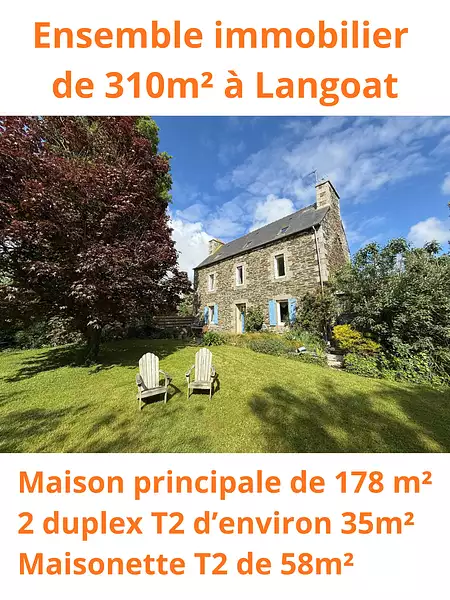 Action Immobilière vous propose sur la commune de Langoat (22450), ce charmant ensemble immobilier en pierre, composé d’une maison d’habitation, de deux duplex indépendants et d’une petite maison T2 de plain-pied, elle aussi indépendant. L’ensemble offre une surface totale d’environ 310 m2 habitables.