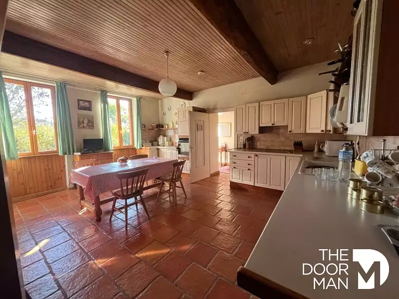 Suivez moi à sa rencontre, compliquée a décrire, chauffage au bois, cuisine spacieuse, charme de l'ancien, tomettes, charpente apparente, hauteur sous plafond agréable, lumineuse, bien agencée, au calme et isolée, je vais résumer mais le mieux sera de venir directement la découvrir.