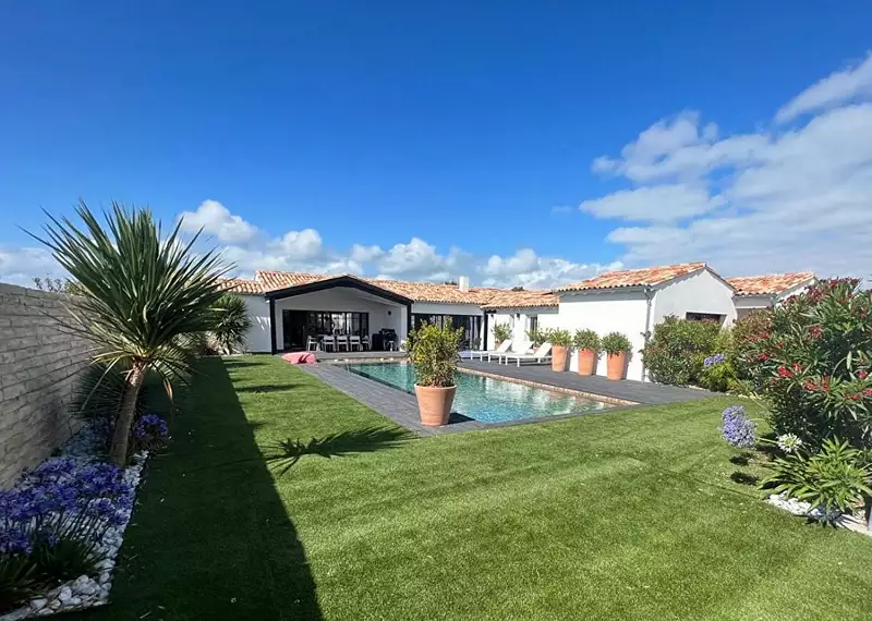 Découvrez cette propriété d'exception à Sainte-Marie-de-Ré, offrant une superficie habitable de 300 m². Avec ses 5 chambres, bureau et cinq patios, elle est entièrement climatisée et sans vis-à-vis.