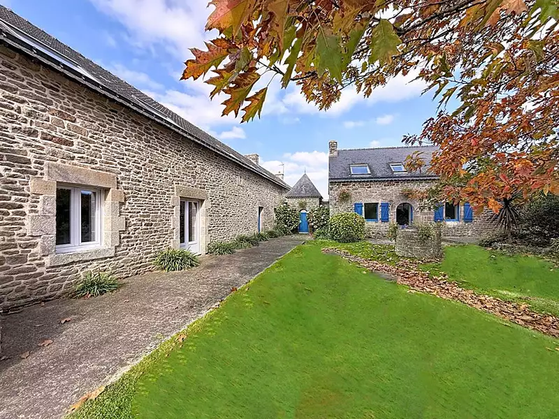 Emmanuelle RENAULT Propriétés Privées Immobilier vous présente « Hortense », un ensemble immobilier en pierre datant du début du XIXe siècle, chargé d'histoire et rénové avec soin depuis 1989. Situé à seulement 7 minutes de Vannes, dans un environnement paisible et verdoyant, cet ancien corps de ferme se compose de trois bâtisses en pierre, entourées d'un jardin clos de murs de 1 600 M², exposé Sud-Est-Ouest.