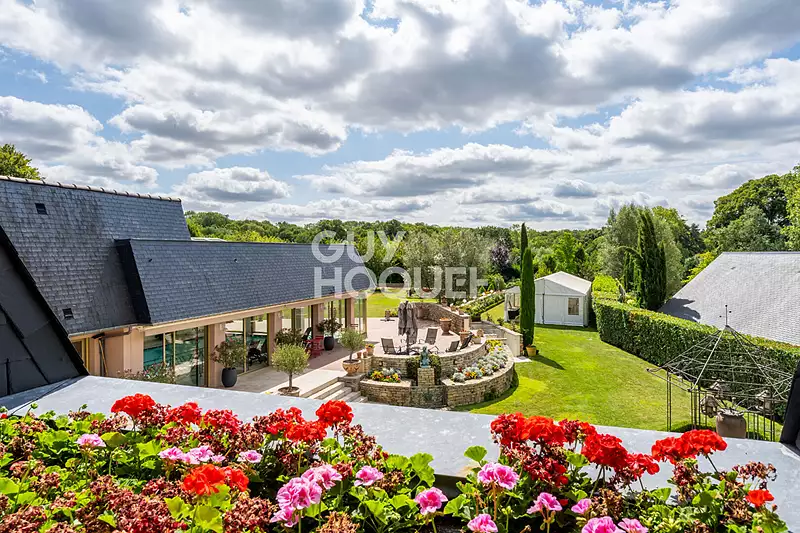 EN EXCLUSIVITÉ dans votre agence GUY HOQUET de SOISY-SUR-SEINE (91450), découvrez cette propriété d'exception qui vous garantit un CADRE IDYLLIQUE, INTIMISTE et PRÉSERVÉ sans VIS-A-VIS, située à Étiolles, dans une résidence sécurisée. Édifiée sur un terrain de 3 649 m², l'intérieur se distingue par un double séjour baigné de lumière avec cheminée, une cuisine moderne et entièrement équipée. Vous profiterez d'un bel espace nuit de plain-pied comprenant un espace de rangement spacieux, une chambre de 15 m², une salle d'eau ainsi qu'un WC séparé. Au même niveau, vous trouverez un cellier, une buanderie avec accès au garage d'environ 50 m² avec portes électriques (possibilité d'y garer 2 voitures), une véranda ainsi qu'une salle de réception ou de jeux de 40 m² communiquant avec la piscine et le jacuzzi intérieurs. A l'étage, la maison dispose d'une mezzanine permettant d'accéder à un espace nuit avec trois chambres, une salle de bains et un WC séparé ainsi qu'une suite parentale d'environ 39 m² avec WC et salle de bains avec douche. En sous-sol, aménagé sous l'espace piscine, vous trouverez un vestiaire avec une salle d'eau, un WC indépendant et le local technique de la piscine. Un autre sous-sol, dessert une belle cave à vin à température contrôlée, un espace chaufferie ainsi qu'un accès au vide sanitaire. Cette propriété est édifiée sur un terrain d'environ 3650 m² avec un terrain de pétanque, un espace de jeux pour enfants et une grande terrasse. Vous profiterez d'un garage indépendant supplémentaire ainsi que 4 places de stationnement extérieurs dans l'enceinte de la propriété équipée d'un portillon et un portail électrique avec visiophone. Vous apprécierez le confort du chauffage au gaz avec radiateurs et d'une cheminée à insert. des fenêtres en aluminium double vitrage et des volets roulants électriques ainsi qu'une alarme. Performance énergétique et émissions de gaz à effet de serre sont intéressants, avec des indices DPE et GES de classe C respectivement de 164 kWh/m²/an et de 24 kg CO2/m²/an. Située dans un quartier calme d'Étiolles, à seulement 30km de Paris, cette maison est proche de plusieurs points d'intérêt, comme de nombreux commerces et plusieurs établissement scolaires, notamment le Collège de l'Ermitage et le Lycée hôtelier Château des Coudraies, parfaits pour les familles avec enfants. Vous trouverez également des parcs à proximité pour vos moments de détente. Ne manquez pas cette opportunité unique de devenir propriétaire de ce bien d'exception proche de toutes commodités, dans un cadre agréable et paisible. Cette propriété est proposée à l'achat pour 2 190 000 euros (honoraires inclus à la charge du vendeur). Les informations sur les risques auxquels ce bien est exposé sont disponibles sur le site Géorisques : www.georisques.gouv.fr COUP DE COEUR ASSURÉ ! Contactez l'agence Guy Hoquet SOISY SUR SEINE pour organiser une visite, au 01 60 79 60 22.
