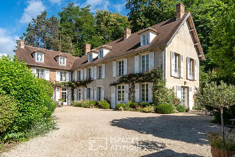 Situé à La Celle-les-Bordes, au coeur d'un environnement naturel exceptionnel, cet ancien relais de poste développe 312 m² habitables. Il s'épanouit sur un terrain arboré de 2 629 m², entre jardins paysagers, sous-bois et espaces de détente, dans un cadre verdoyant et vallonné typique de la vallée de Chevreuse. La proximité immédiate d'un château chargé d'histoire, ainsi que la présence de nombreuses dépendances, confèrent à cette propriété un caractère rare, à la croisée de la nature et du patrimoine. Dès l'entrée, la maison dévoile une atmosphère chaleureuse et authentique, portée par un salon et une salle à manger traversants baigné de lumière. A l'étage, quatre grandes chambres, dont deux avec salle de douche privative, se partagent deux salles de bains et des toilettes séparées. Un charmant boudoir, un bureau discret ainsi qu'une cinquième chambre avec salle de douche, située au deuxième étage, complètent les espaces de nuit. Les extérieurs offrent un véritable écrin de verdure avec trois ambiances végétales distinctes : un jardin paysagé soigné, un sous-bois en surplomb et une parcelle en contrebas, idéale pour les loisirs ou le jardinage. Un garage double avec grenier, un atelier et une remise complètent les prestations. A seulement 15 minutes des gares de Rambouillet et de Saint-Rémy-lès-Chevreuse (RER B), cette maison offre la quiétude de la campagne tout en restant proche des axes menant à Paris. Une propriété singulière, idéale pour les amoureux d'authenticité, de nature et d'histoire, nichée au coeur de l'une des plus belles vallées d'Île-de-France CLASSE ENERGIE : D / CLASSE CLIMAT : D Montant moyen estimé des dépenses annuelles d'énergie pour un usage standard, établi à partir des prix de l'énergie des années 2021, 2022 et 2023 abonnement compris : entre 5402 euros et 7308 euros Contact : Hiba PROTAIS 07 60 88 34 97 RSAC : 925 249 500 VERSAILLES Hiba PROTAIS (EI) Agent Commercial - Numéro RSAC : 925249500 - Versailles.