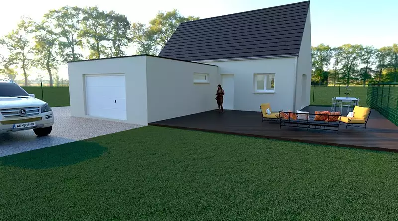 Maison conforme à la RE2020 avec espace de vie lumineux, cuisine ouverte, salle de bain, WC séparés et garage accolé ,Accompagnement complet avec Creatik Solution.