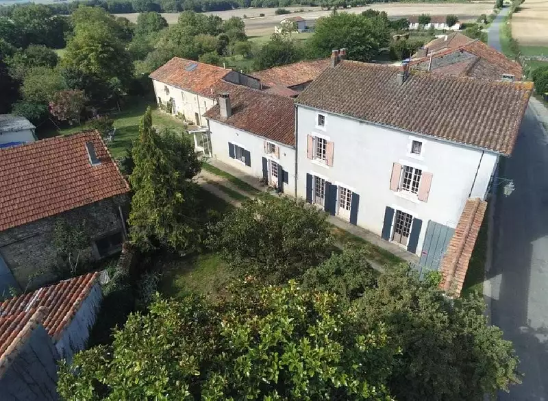 Fiche Id-SUP177410 : En franchissant le superbe porche en pierre voûté pour entrer dans les jardins privés, il est immédiatement évident que cette propriété est vraiment exceptionnelle. Cette spacieuse maison familiale offre cinq grandes chambres, complétée par un gîte indépendant récemment aménagé, offrant une chambre supplémentaire — parfait pour accueillir des invités ou de la famille élargie.La maison bénéficie d’un chauffage central au gaz confortable et d’une cuisine moderne récemment rénovée. Le système d’assainissement a également été entièrement mis à jour, offrant tranquillité d’esprit et commodité.Située sur près d’un hectare de terrain attenant, la propriété est idéale pour ceux qui rêvent d’avoir un cheval, de cultiver leur propre nourriture ou simplement de vivre de manière plus autonome. Un puits et une citerne de récupération d’eau de pluie fournissent une source d’eau durable pour votre potager ou vos animaux. MAISON PRINCIPALE Rez-de-chaussée-Cuisine équipée (32m²) : carrelage, insert-Grand Hall (18m²) : lino, poutres apparentes-Chaufferie (4m²) : carrelage-WC - Mentions légales : Proposé à la vente à 264550 Euros (honoraires à la charge du vendeur) - Classe Energie D : 213 kWh.m2.an - (DPE ancienne version) - Reseau Immo-Diffusion Ruffec - Pour plus d'informations, contactez notre secrétariat au 09 74 53 13 81 (Appel gratuit ou prix d'une communication locale)