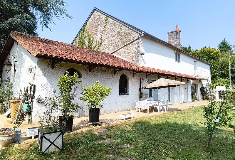 Elle comprend au RDC : une grande entrée desservant un double salon avec sa cheminée et sa vue sur le jardin, deux chambres et une salle d'eau avec WC ainsi qu'un hall. Dans le prolongement de l'entrée, un WC, une belle salle à manger de 40 m2 et sa cheminée d'époque avec une grande hauteur sous plafond, cuisine équipée et meublée donnant accès à une autre vaste pièce et son four à pain, un espace chaufferie, buanderie et arrière cuisine.