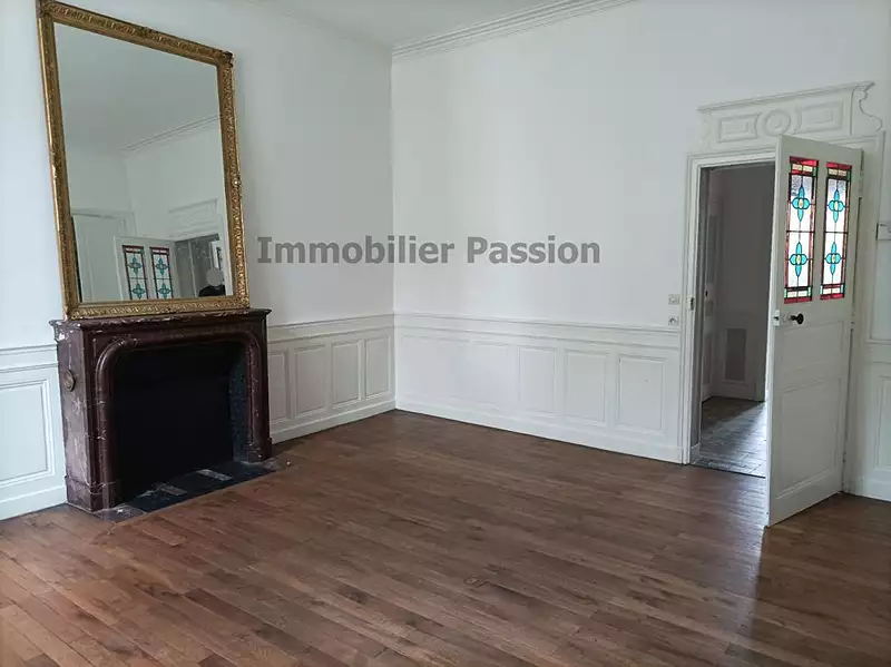 ANGERS-CENTRE, très bonne adresse, belle double angevine avec cachet, parquet massif, moulures, cheminées marbres... en bon état, comprenant plus de 50m² de réception au rdc, wc. Sur les 3 étages au-dessus: 11 grandes chambres (possible +), 3 SDB, (possible +) 4 wc. 2 caves. Jardin au calme.