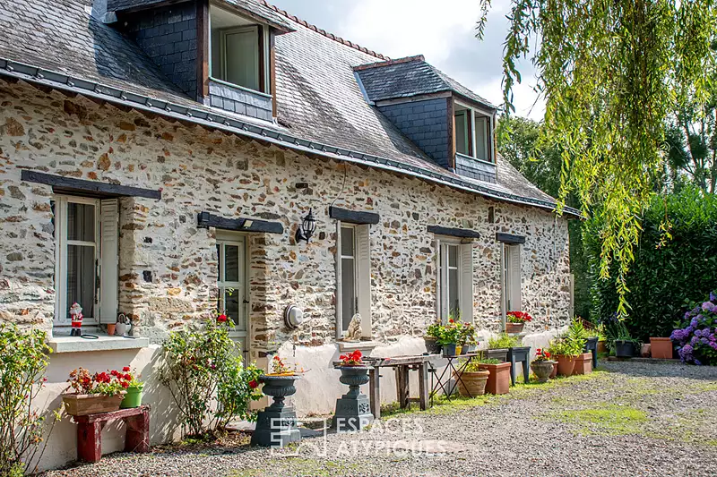A Ombrée d'Anjou, nichée dans une commune empreinte de charme et de tranquillité, se dresse une ancienne ferme. Cette dernière a retrouvé toute son âme grâce à une belle rénovation et offre un cadre de vie alliant histoire et confort. La longère se déploie en plusieurs espaces distincts, chacun ayant son caractère propre. La partie habitation principale, d'une superficie d'environ 320 m², s'ouvre sur une cuisine et un salon où la pierre, le bois et le schiste se marient harmonieusement, réchauffés par un poêle à bois. Dans la continuité, on découvre un second salon, puis une salle à manger magnifiée par le plancher en bois massif et les poutres apparentes. De grandes baies vitrées à galandage offrent un accès direct au jardin champêtre et verdoyant, avec une jolie vue sur l'étang. Une grande salle de détente de 47 m², équipée d'un sauna, complète le rez-de-chaussée. Un escalier mène au demi-palier vers une chambre d'environ 40 m², nichée derrière une porte en bois au style médiéval. Puis, au premier étage, le palier distribue une première chambre principale disposant d'une salle d'eau privative ainsi que deux autres chambres. Une salle de bain complète l'espace nuit. La bâtisse est complétée par un garage et un hangar. Une dépendance avec un four traditionnel à bois pourrait être transformée en une salle de réception, selon les aspirations de ses futurs propriétaires. Cette ancienne ferme offre un cadre de vie exceptionnel, où l'histoire se mêle harmonieusement à la modernité. C'est une invitation à vivre dans un lieu empreint de caractère, de confort et d'authenticité. CLASSE ENERGIE : D / CLASSE CLIMAT : D Montant moyen estimé des dépenses annuelles d'énergie pour un usage standard, établi à partir des prix de l'énergie de l'année 2021 : 4 500 euros et 6 150 euros. Contact : Florian BENATRE - 06 77 41 22 31 EI - Agent commercial immatriculé au RSAC Angers n° 937 539 690 Les honoraires sont à la charge du vendeur. Les informations sur les risques auxquels ce bien est exposé sont disponibles sur le site Géorisques: www.georisques.gouv.fr