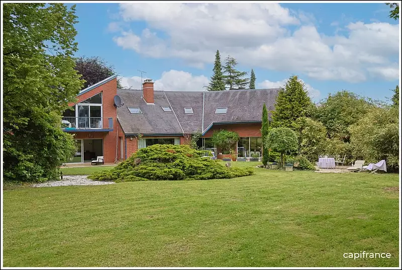 La villa, conçue par l'Architecte Belin, allie modernité et fonctionnalités. Vous profiterez de la luminosité et des larges vues vers le parc entourant.