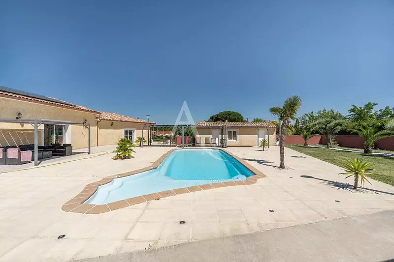 Située à Aussonne, à 1.5 km du centre ville et des commerces. Maison 7 pièces de plain pied, construite en 2009, plus dépendance de 20 m². Amoureux des grands espaces, cette maison est faite pour vous. Vous profiterez de son séjour traversant nord/sud de 50 m², donnant sur la cuisine semi-ouverte équipée de 30 m². Vous apprécierez aussi, pour recevoir, le salon baigné de lumière, de plus de 90 m². Le coin nuit n'est pas en reste, avec ses 5 chambres spacieuses allant de 13 m² à 21 m² ainsi que la salle de bains avec baignoire, douche et hammam de près de 12 m². Coté pratique, un cellier attenant à la cuisine, une buanderie, une chaufferie avec la pompe à chaleur, une seconde cuisine de 15 m² et deux toilettes séparés. Belles prestations avec isolation récente, chauffage par pompe à chaleur air/eau, cumulus thermodynamique, volets électriques centralisés, panneaux photovoltaïques et système de vidéosurveillance. Enfin, vous bénéficierez aussi d'une dépendance de 20 m². Le tout sur 7814 m² de terrain, non constructible, avec piscine 13x6!