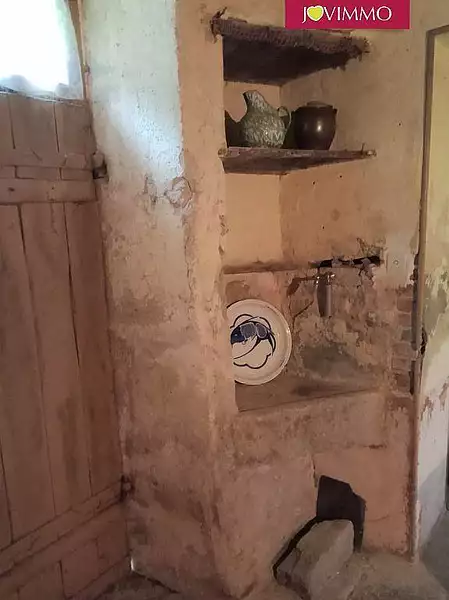 La maison habitable se compose au rez-de-chaussée d’une pièce à vivre avec coin cuisine et à l’étage vous trouverez 2 chambres et une salle de bains avec WC