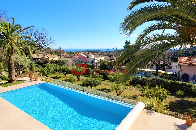 CO-EXCLUSIVITÉ NOUVEAUTE *** à Vence, venez découvrir cette élégante villa individuelle, majoritairement de plain pied, de 321 m2 offrant une très belle vue avec aperçu mer dans un cadre de vie d’exception. Nichée sur un terrain de 1500 m2 environ, dominant la région, cette propriété se trouve dans un calme absolu tout en étant à seulement 2 minutes à pied du centre-ville. Dès l'entrée, vous êtes accueilli par un vaste espace de vie baigné de lumière et une cuisine indépendante entièrement équipée, prolongée par une superbe véranda. La villa dispose d’une suite parentale avec dressing et salle de bains, une chambre supplémentaire, une salle de bains, un WC invités et un bureau. À l’étage, 3 chambres spacieuses ainsi que deux salles de bains et toilettes. Et un beau studio indépendant ! Avec une hauteur sous plafond de 3 m env. et des matériaux de qualité, cette villa révèle des prestations haut de gamme : un garage de grande capacité, une piscine au sel chauffée, une terrasse de 200 m2 env., une cave à vins, un portail électrique, arrosage automatique, double vitrage, volets en aluminium, climatisation réversible à l’étage, chauffage au sol, fibre optique, toiture récente, assainissement public, buanderie, cheminée, ainsi que de nombreux stationnements extérieurs.Une villa alliant confort moderne et charme authentique, à visiter sans tarder. Possibilité d'acquerir le bien sans la piscine et sans le studio. Contact : 06 02 71 79 09