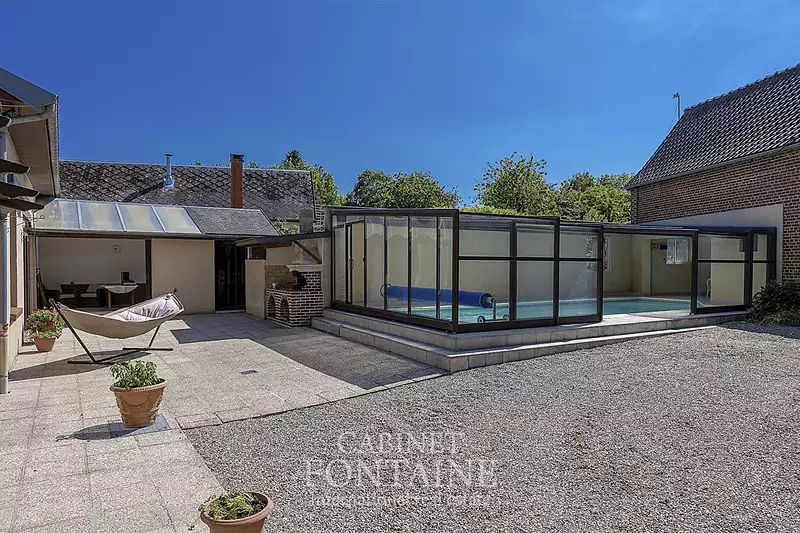 Bien à multiples facettes, composé comme suit : Situé à Rubempré à 17 km d'Amiens Une longère principale de 212,25 m2 en DPE C Avec poutres apparentes offrant une pièce de vie de 57 m2 avec son insert à bois et une hauteur sous plafond de 2,93 m (très rare pour ce type de bien), une cuisine aménagée et équipée semi-ouverte de 25,50 m2, une véranda judicieusement conçue pour les économies d'énergie avec un accès cave, un petit couloir vous mène au wc séparé, suivi d'une salle de bain avec baignoire ronde, douche et deux meubles vasques de 17,11 m2, une buanderie de 21,89 m2 avec insert bois qui pourrait devenir une magnifique chambre parentale en rdc donnant sur un jardin d'hiver, un première escalier conduit sur un palier desservant deux chambres mansardées pleines de charme, un autre escalier permet d'accéder à deux autres chambres aux beaux volumes dont une avec un espace rangement (ou cabane pour vos jeunes enfants) ainsi qu'une grande pièce palière actuellement utilisée en bureau petit salon. Sur les extérieurs privatifs sans vis à vis, un espace barbecue en brique, une piscine avec douche et meuble vasque sous abri coulissant, une première dépendance avec cave, une deuxième accueillant un atelier d'environ 60 m2 ouvrant sur le potager. Des panneaux photovoltaïques génèrent des revenus de 1 475 euros par an (le contrat est encore actif 5 années). Vous bénéficiez également de revenus locatifs (111,03 m2) 1 T3 de 42.74 m2 carrez loué 360 euros Charges comprises bail un an renouvelable en février 1 T4 de 68.29 m2 carrez loué 600 euros Charges comprises bail un an renouvelable en octobre Avec compteurs électriques individuels Chauffage électrique et productions eau chaude par ballons 100 et 200 litres, vmc simple flux DPE D - Diagnostics sans anomalies ! Situés sur une autre dépendance ni accés ni vis à vis avec la longère principale Soit en tout, un revenu mensuel de 1 083 euros ! Une belle opportunité s'offre à vous, saisissez là !!!