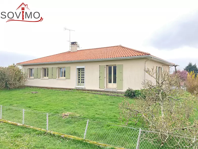 REF. 34362 : 216 000 euros H.A.I, Manot (16), dans un village avec épicerie, Un pavillon indépendant de 1978 sur sous sol semi enterré, à usage d'habitation, 325 m2 env. utilisables : comprenant au rez de jardin ou sous sol : hall/cuisine d'été, véranda (poêle à granulés), bureau avec salle d'eau/wc, cabinet de toilette, cuisine/salle à manger/salon (cheminée avec insert), au rez de chaussée ou étage : entrée, salon, 5 chambres, salle de bain, couloir, cabinet de toilette, chauf. fuel, assainissement collectif, cave, Garage indépendant de 72 m2, terrain attenant, le tout sur 1700 m2 environ.