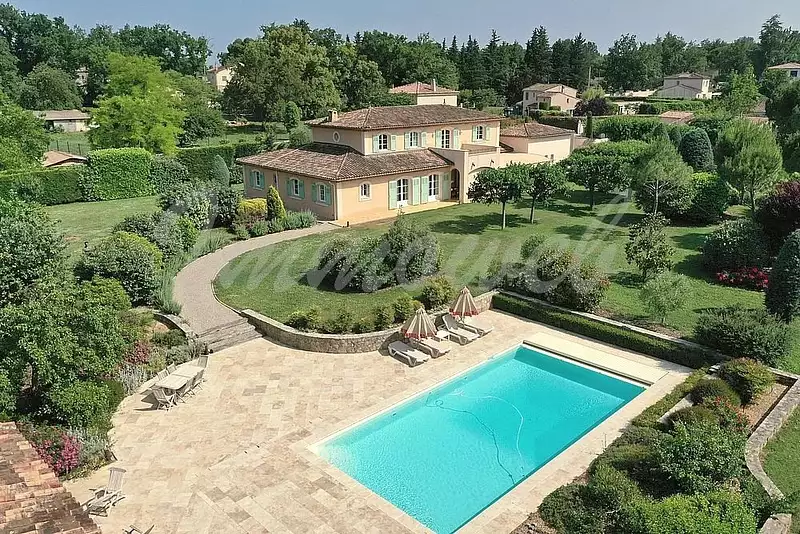 Proche village, belle villa de 326 m² environ comprenant: au rez-de-chaussée, entrée, un séjour spacieux et lumineux avec cheminée, un salon Tv, une cuisine équipée, buanderie, une chambre maitre avec dressing, une salle de bains. A l’étage, quatre chambres spacieuses, deux salles de bains, terrasse. Cave, garage et abri voiture. Piscine chauffée avec pool house. Terrain de 5770 m². Prestations de qualité.
