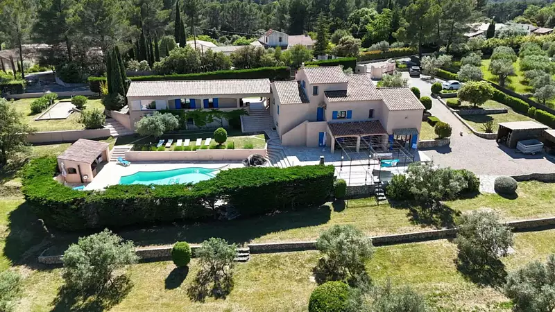 Découvrez ce havre de paix sur 6081m2 de terrain complanté d'oliviers et clôturé à proximité de tous les centres d'intérêt touristiques de la Provence verte (Gorges du Verdon, domaines viticoles, Golfe de Saint-Tropez, les magnifiques villages de Cotignac, Tourtour, Lorgues, Flayosc...). Actuellement exploité en chambres d'hôtes (4 chambres plus un 2 pièces), ce bien vous séduira par son environnement, par ses prestations ainsi que le niveau des rénovations. Vous pourrez y poser vos valises et exploiter immédiatement ce bien où les clients profiteront de 400m2 de terrasse aux abords d'une piscine à débordement. La partie privée de la maison, complètement indépendante est composée d'un salon séjour, d'une cuisine ouverte, de 2 chambres, 2 Sdd , 1 bureau et un WC séparé. Le plus de ce bien, une cuisine professionnelle de 73m2 très utile pour envisager également des tables d'hôtes, avec attenantes, une magnifique cave ainsi qu'une buanderie totalement équipée. Si vous souhaitez vivre en Provence, profiter de la tranquillité des lieux et faire découvrir la région à vos hôtes, n'hésitez plus et venez visiter ce bien d'exception qui ne pourra que vous séduire.
