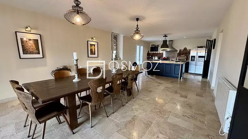 Située au cœur de la Drôme des Collines, dans le charmant village de Saint Bonnet de Valclérieux, cette magnifique propriété allie authenticité, confort et potentiel locatif élevé. À seulement 1h30 de Lyon et à 35 minutes de la gare TGV de Valence, elle constitue une opportunité rare pour les amoureux de la nature et de la tranquillité. Le domaine comprend deux bâtiments distincts : une maison principale de 140 m2 et un gîte indépendant entièrement meublé de 236 m2. Le tout repose sur un terrain joliment aménagé avec piscine, terrasses, cuisine d’été et espaces de stationnement, offrant un cadre de vie idéal en harmonie avec la nature. La maison principale offre une pièce de vie spacieuse et lumineuse avec une cuisine ouverte, parfaite pour partager des moments conviviaux en famille ou entre amis. Elle comprend également trois belles chambres, une salle d’eau, une salle de bain, deux toilettes et une salle de jeux. Les matériaux de qualité, tels qu’un plancher en chêne massif et un plan de travail en quartz, confèrent à cette demeure un cachet chaleureux et soigné. Le chauffage et l’eau chaude sont assurés par une chaudière à granulés automatisée, garantissant confort et économies d’énergie. Le gîte, récemment rénové avec des matériaux haut de gamme, est conçu pour accueillir confortablement les hôtes. Au rez-de-chaussée, une cuisine équipée avec piano Rosière s’ouvre sur un vaste salon-séjour de 41 m2. À l’étage, trois grandes chambres disposent chacune de leur salle d’eau et de leurs toilettes. Une chambre double, une petite chambre avec lits superposés et une salle d’eau familiale avec double vasque complètent l’ensemble. Le chauffage est assuré par des radiateurs à inertie, un poêle à bois et un chauffe-eau thermodynamique, assurant une chaleur agréable en toutes saisons. À l’extérieur, le jardin paysager invite à la détente. La piscine, la cuisine d’été, les terrasses et les espaces extérieurs offrent de nombreux lieux pour profiter du cadre naturel. Un atelier, un parking sécurisé et quatre places de stationnement viennent parfaire cette propriété. Idéal comme résidence principale avec activité touristique, le gîte génère un chiffre d’affaires annuel d’environ 15 000 € et est vendu entièrement meublé, prêt à fonctionner dès l’acquisition. Des visites immersives et des plans 3D sont disponibles sur demande. Ne manquez pas cette opportunité exceptionnelle d’acquérir une propriété clé en main, dans un environnement naturel privilégié, alliant qualité de vie et rentabilité.