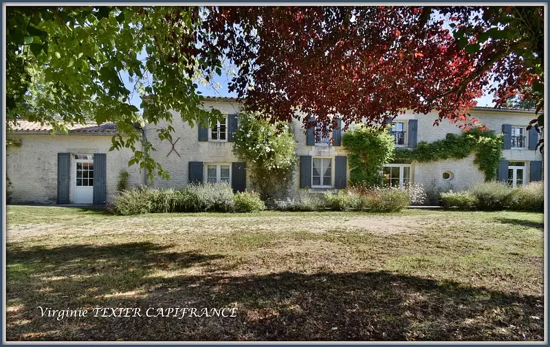 VILLENEUVE LA COMTESSE, village avec commerces et écoles situé entre SAINT JEAN D'ANGELY et NIORT, MAISON ANCIENNE rénovée de type 10, d'une superficie de 337m² avec dépendances sur 4800 m² de terrain arboré.