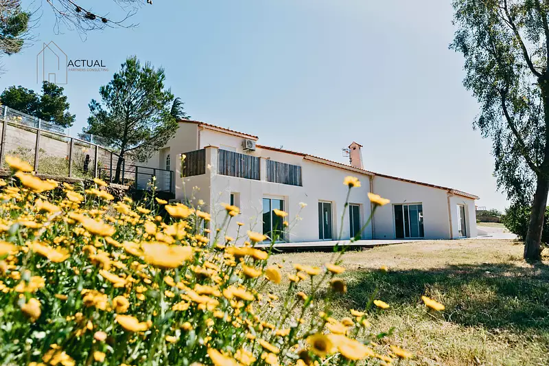 Prestations techniques de qualité : climatisation réversible, double vitrage aluminium, volets roulants motorisés, visiophone, portail automatique, ravalement de façade récent, travaux de finitions à prévoir..