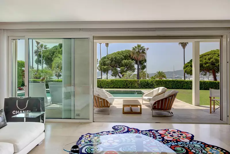 Face au Port Canto, superbe villa contemporaine de 330 m2 avec piscine privative et jardin verdoyant de 700 m2 offrant une vue exceptionnelle sur la baie de Cannes.
