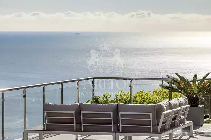 À l’extérieur, le jardin méditerranéen soigneusement paysagé entoure une grande piscine chauffée en mosaïque. Une cuisine d’été discrètement intégrée à la végétation et une vaste terrasse plane créent un espace idéal pour se détendre ou recevoir, avec la mer comme toile de fond.