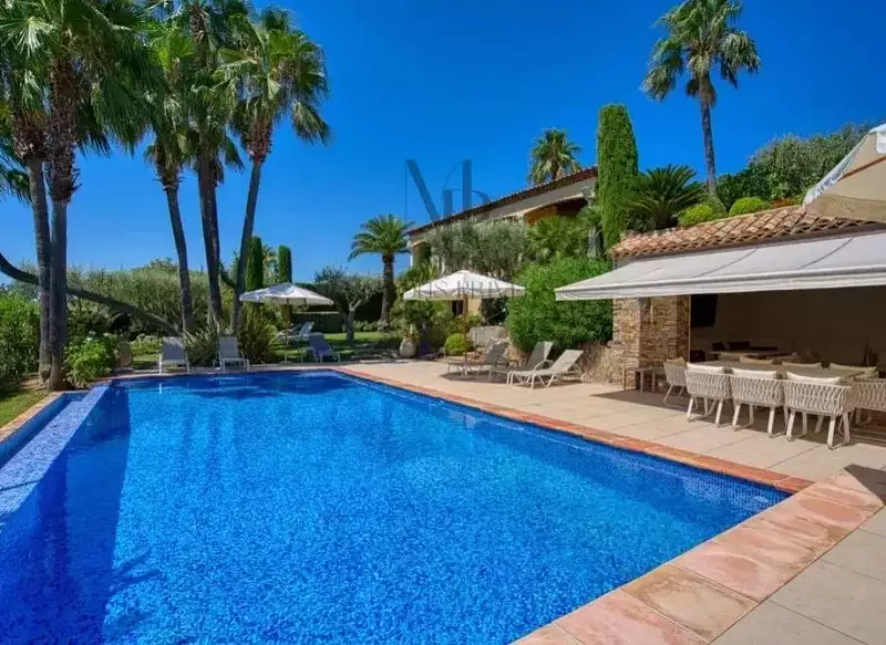 Dans un domaine fermé, édifiée sur un terrain de 1 700 m² avec piscine, pool house intégré dans la roche et jacuzzi, villa de 330 m² avec un bel aperçu mer et une vue ouverte et dégagée sur la campagne et les collines environnantes.