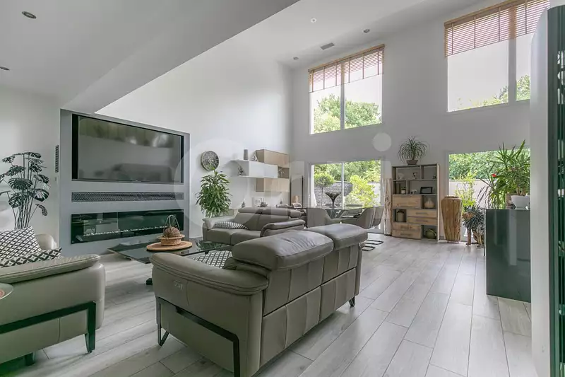 Belle pièce de vie avec séjour cathédral, offrant un espace chaleureux et ouvert. Cuisine moderne entièrement équipée, idéale pour partager des moments conviviaux, une suite parentale confortable et élégante. trois autres chambres lumineuses et spacieuses. Climatisation réversible.