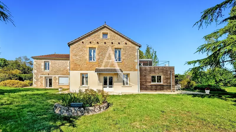 Découvrez cette maison d'architecte exceptionnelle, nichée dans un écrin de verdure . Avec ses 330 m² habitables, elle se compose de deux logements indépendants, parfaits pour accueillir deux familles, lancer un projet touristique ou locatif. Au rez-de-chaussée, profitez d'un premier espace de 130 m² avec deux chambres confortables et un système de chauffage par pompe à chaleur, alliant bien-être et économies d'énergie. A l'étage, laissez-vous séduire par un second logement de 200 m² comprenant trois grandes chambres chacune équipée de sa salle d'eau, chauffé par une combinaison électrique et poêle à granulés pour un confort optimal. Côté équipements, tout est pensé pour votre qualité de vie : garage, fibre optique, VMC, micro-station, puits avec pompe et double vitrage aluminium viennent compléter ce bien . Ne manquez pas cette opportunité unique d'allier espace, luminosité et modernité dans un cadre calme et privilégié.