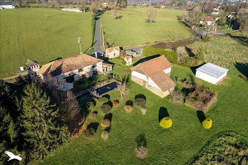 A moins de 5min du centre de St Yrieix la Perche, ensemble en pierres rénové avec vue. La maison offre de beaux volumes. Dont une pièce de vie de 80m², bureau de 50m². Nombreuses dépendances. Rénovation de qualité. Bassin alimenté par une source. Le tout sur un terrain clos d'environ 2.7 hectares attenants.
