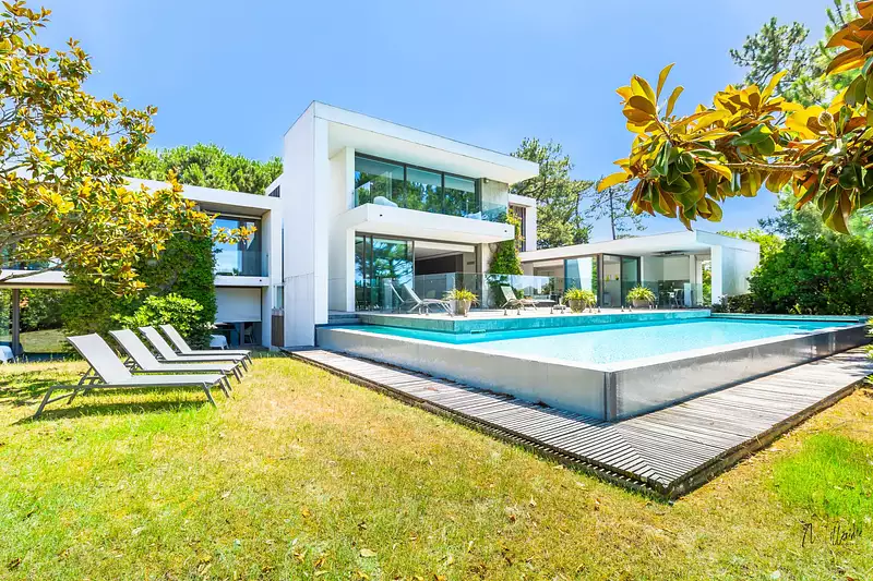 Dans le quartier très prisé de Chiberta, magnifique contemporaine de plus de 330m2 habitables nichée à l'abri des regards avec vue sur le Golf et le Lac .