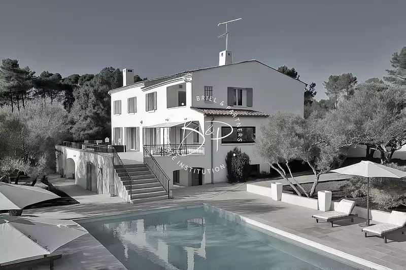 Briel et Partners vous propose cette belle bastide provençale, située à seulement 2 minutes du village du Thoronet, mondialement réputé pour son abbaye cistercienne. Nichée au coeur d'un terrain arboré de 12 000 m², sans vis-à-vis et plantée d'oliviers, la propriété d'environ 330 m², entièrement rénovée avec goût et raffinement, offre un cadre de vie paisible. Au rez-de-chaussée, une entrée mène vers un séjour avec cheminée d'angle, une cuisine semi-ouverte et son espace repas donnent sur une grande terrasse de 100m² ensoleillée ombragée par une pergola avec vue dégagée. Ce niveau offre également une buanderie, un cellier, ainsi qu'une chambre avec salle de bains et un WC indépendant. La surface totale de ce niveau est de 140,65 m². A l'étage, trois suites, chacune avec salle de douche personnalisée, ainsi qu'une élégante chambre de maître dotée de sa terrasse tropézienne de 4,80 m² avec vue imprenable sur les collines, dressing et salle d'eau avec double vasque et douche à l'italienne. L'étage totalise 159,95 m², dont un solarium de 48 m². En rez-de-jardin, un F2 avec cuisine et salle d'eau permet de recevoir des invités en toute autonomie. Il est malgré tout accessible par un escalier intérieur. A ce niveau, un sous-sol de 100 m² offrent de nombreuses possibilités d'aménagement (salle de sport, ateliers...) Une terrasse sous porche de 80 m² complète ce niveau. L'extérieur déploie un véritable havre de détente : une piscine de 14 x 5,6 m au sel, un pool house de 19,8 m², un terrain de pétanque. La plage de la piscine couvre 175 m², permettant d'aligner les bains de soleil sans limite. La maison profite de la climatisation réversible et sera bientôt équipée de panneaux solaires maquillés en abris voitures. Un portail électrique et la fibre optique viennent compléter les prestations modernes de cette propriété à seulement 8 km de l'autoroute, avec les aéroports de Nice et Marseille accessibles en 1h à 1h15, proche de Lorgues et de son marché réputé, de ses commerces, restaurants et écoles.