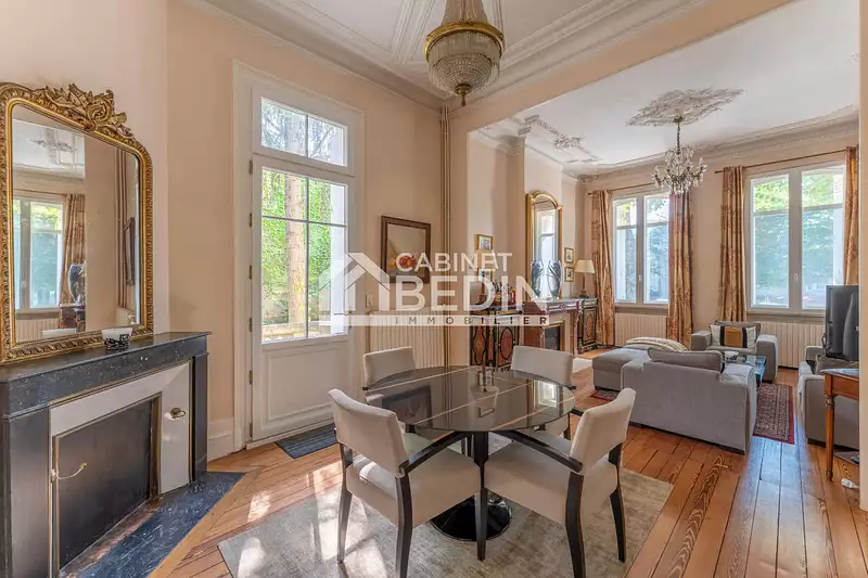 Cet hôtel particulier a entièrement conservé ses prestations anciennes avec de belles hauteurs sous plafond, les cheminées en marbre, parquets d'origine, verrière. . .