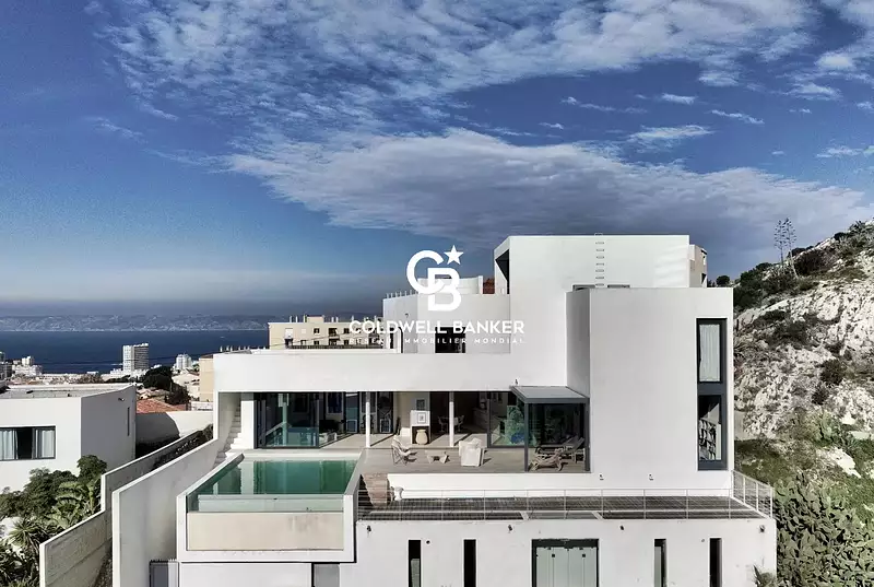 À Vendre à Marseille 7ᵉ, Quartier Roucas-Blanc, Maison Moderne de 333 m2 avec Piscine Chauffée à Débordement et 3 Terrasses cumulant 180 m2 en Position Dominante, Vue Unique sur Notre Dame de la Garde, Colline du Roucas Blanc et Vue Mer, 5 Chambres. Disponible Immédiatement. Diagnostic Énergie DPE : B 84. Diagnostic Climat GES : A 2. Autres Diagnostics en cours. Les informations sur les risques auxquels ce bien est exposé sont disponibles sur le site Géorisques : www.georisques.gouv.fr. Montant des Dépenses Annuelles d'Énergie pour un usage standard entre 1.660 Euros et 2.290 Euros par an, Prix moyens des énergies indexés au 1er Janvier 2021 (Abonnements Compris). Taxe Foncière 7.463 Euros. Honoraires d’Agence à la charge du Vendeur. Prix 2.880.000 Euros HAI. Dossier du Bien et ses Photos sur demande. Renseignement strictement sur des coordonnées fixes, Identité Contrôlable et Évidence de Fonds. Coldwell Banker - Massilia - 540 Rue Paradis - 13008 Marseille - N° Siret : 894.985.175 - Cpi : 1310 2021 000 000 112 - Autres biens similaires, nous consulter directement au +33 4 91 71 72 66 - Visiter et - Mandat N°2022021/OA - Référence : Celia