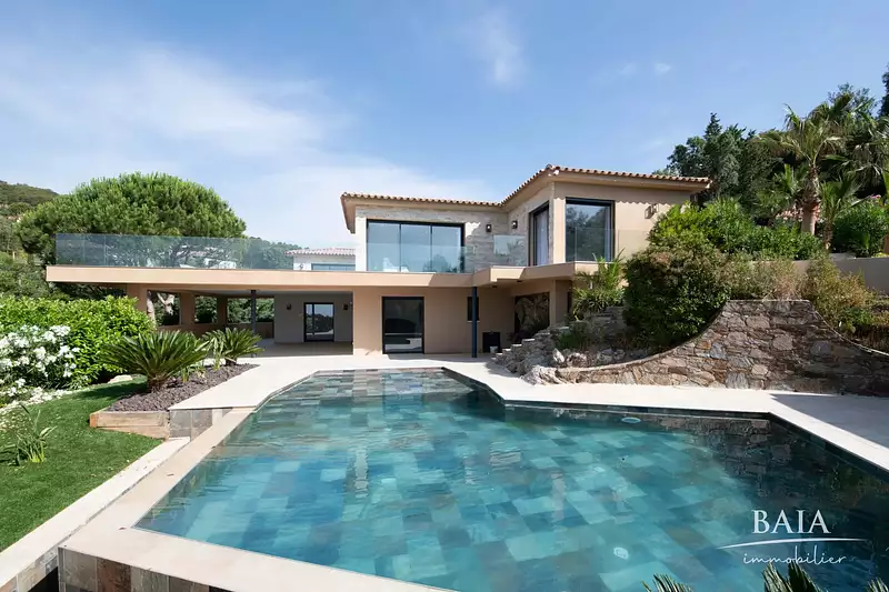 Tout proche du Golf de Beauvallon, cette luxueuse propriété est composée d'une maison principale meublée aux volumes généreux et harmonieux.
